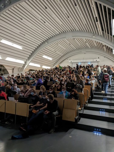 Am 10.11. beschloss die studentische Vollversammlung an der TU Darmstadt Forderungen an Universität, Land und Bund, damit Studierende endlich spürbar entlastet werden. Insgesamt 550 Studierende diskutierten auf Einladung des AStAs im bis auf den letzten Platz gefüllten Hörsaal des Alten Maschinenhauses und im Livestream. Damit war die Vollversammlung die Größte seit dem Kampf gegen die Studiengebühren 2006. Zu Beginn berichteten einzelne Studierende von ihrer aktuellen Lebenssituation: “Ich musste inzwischen einen zweiten Minijob aufnehmen, um überhaupt noch studieren zu können” erzählte eine Politikwissenschaftsstudentin. Eine andere berichtete, dass sie trotz Meisterbrief keine Wohnung in Darmstadt finde, weil ihr 1000 Euro für die Kaution fehlen.